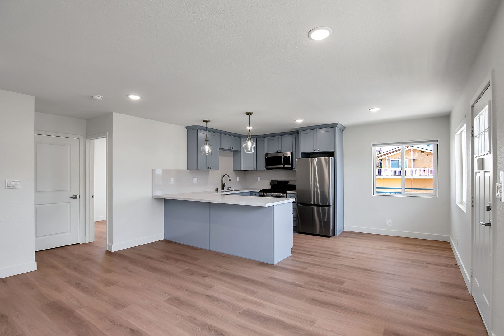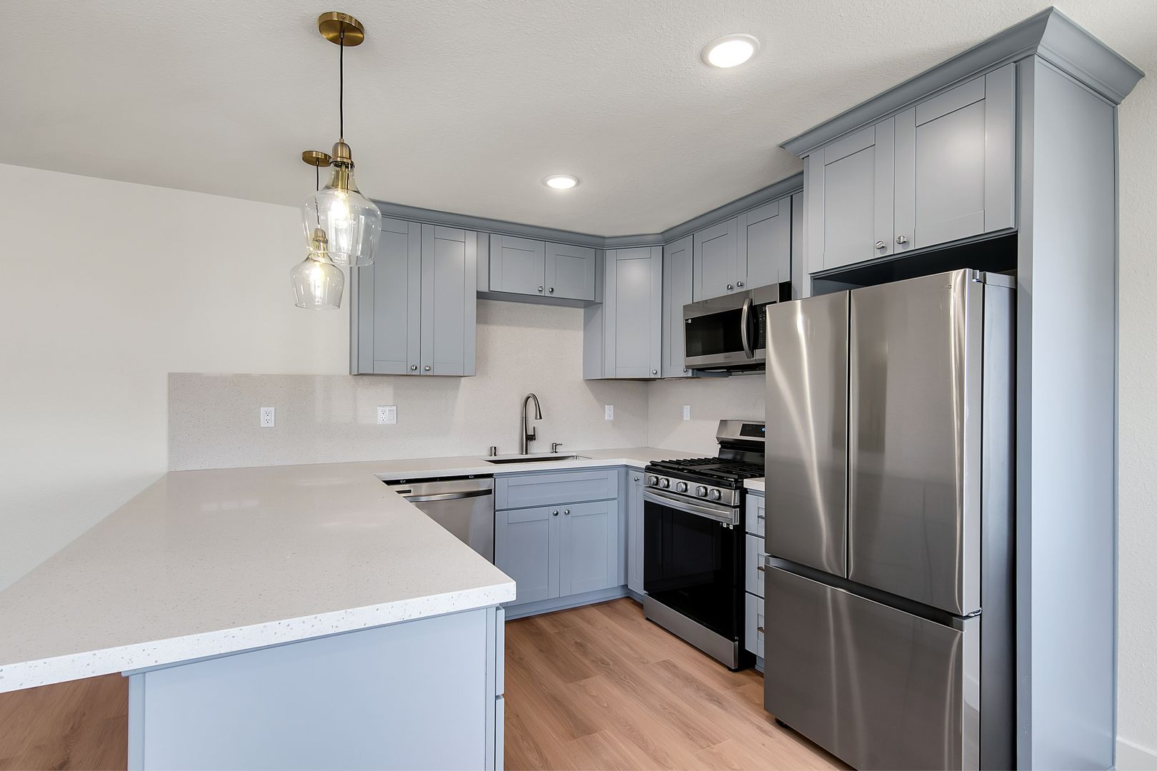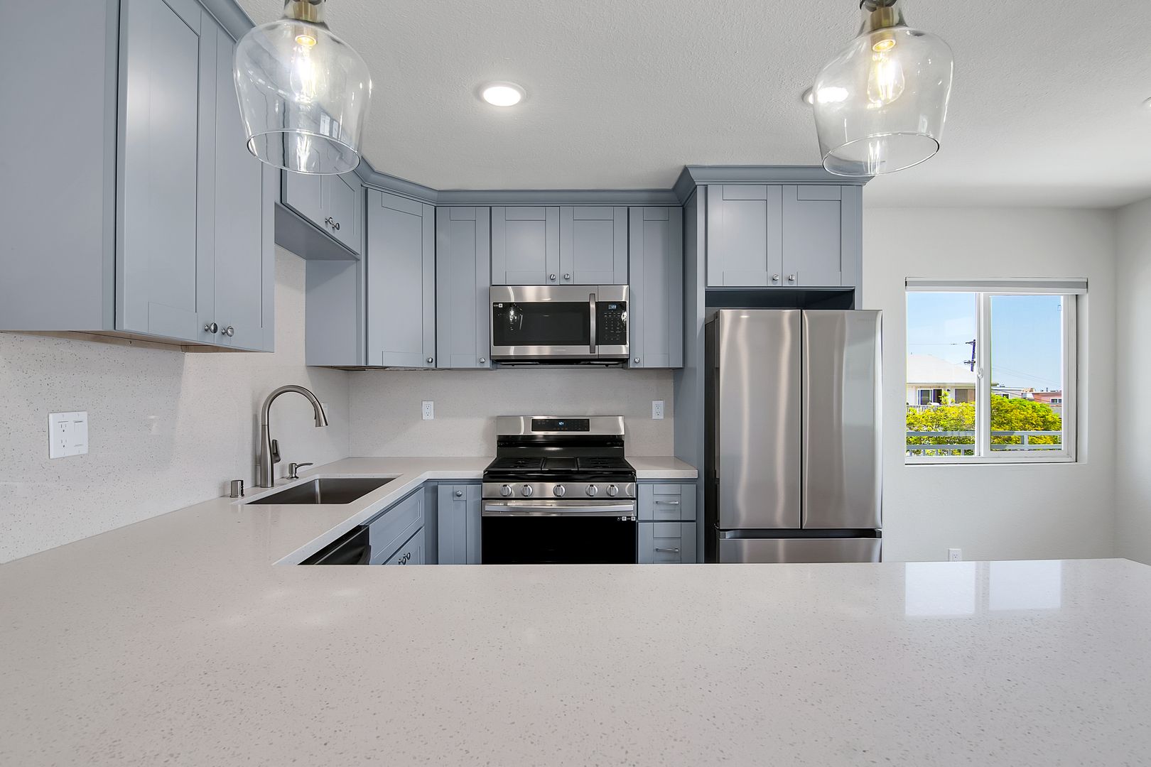 - Brand new kitchens equipped with top-of-the-line appliances, sleek cabinetry, and quartz countertops
