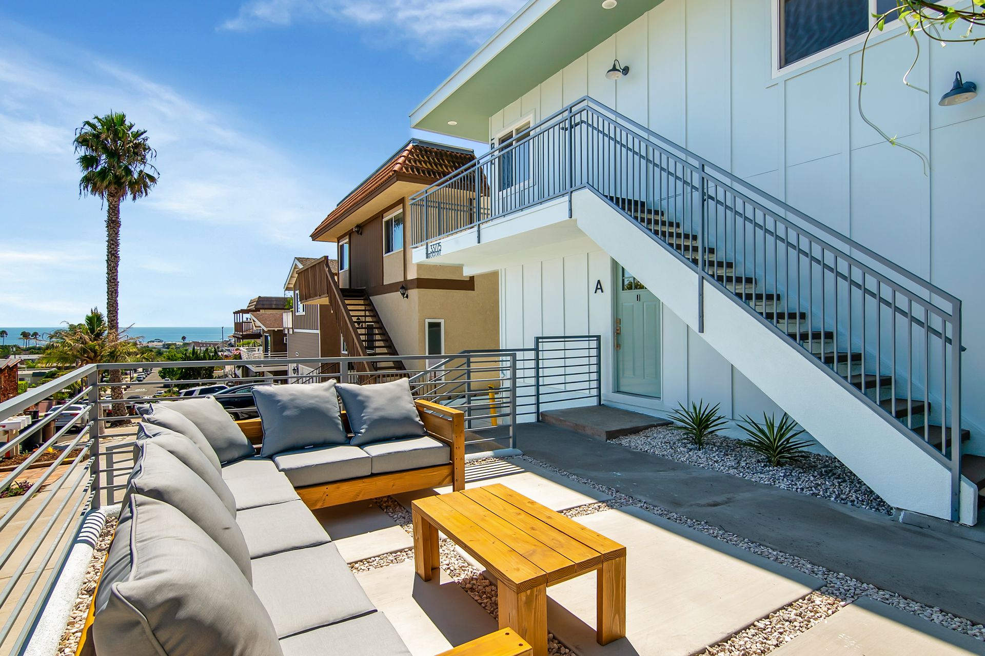 - Views of the Pacific Ocean from living rooms and the upper deck