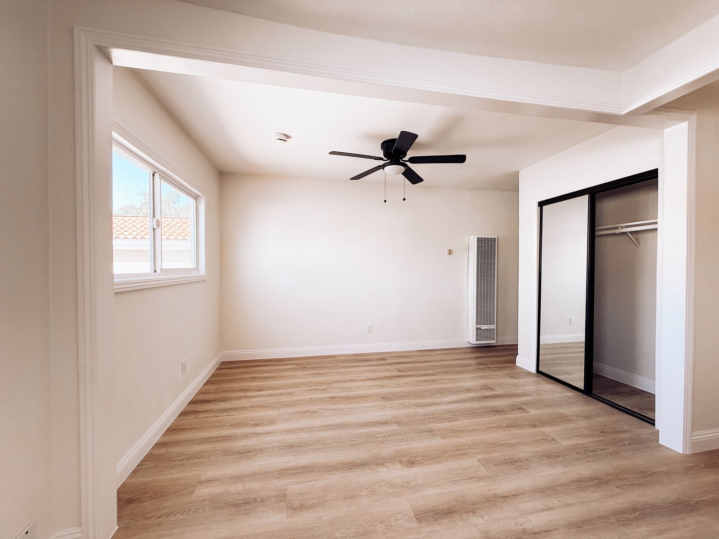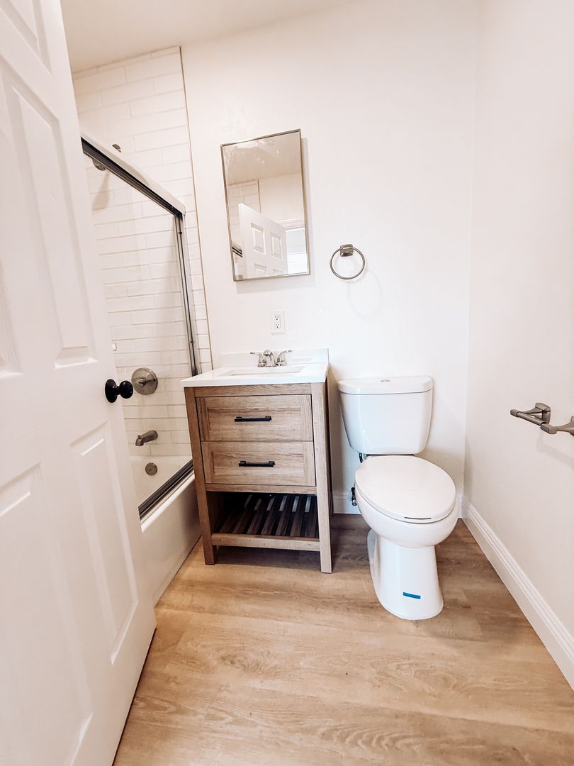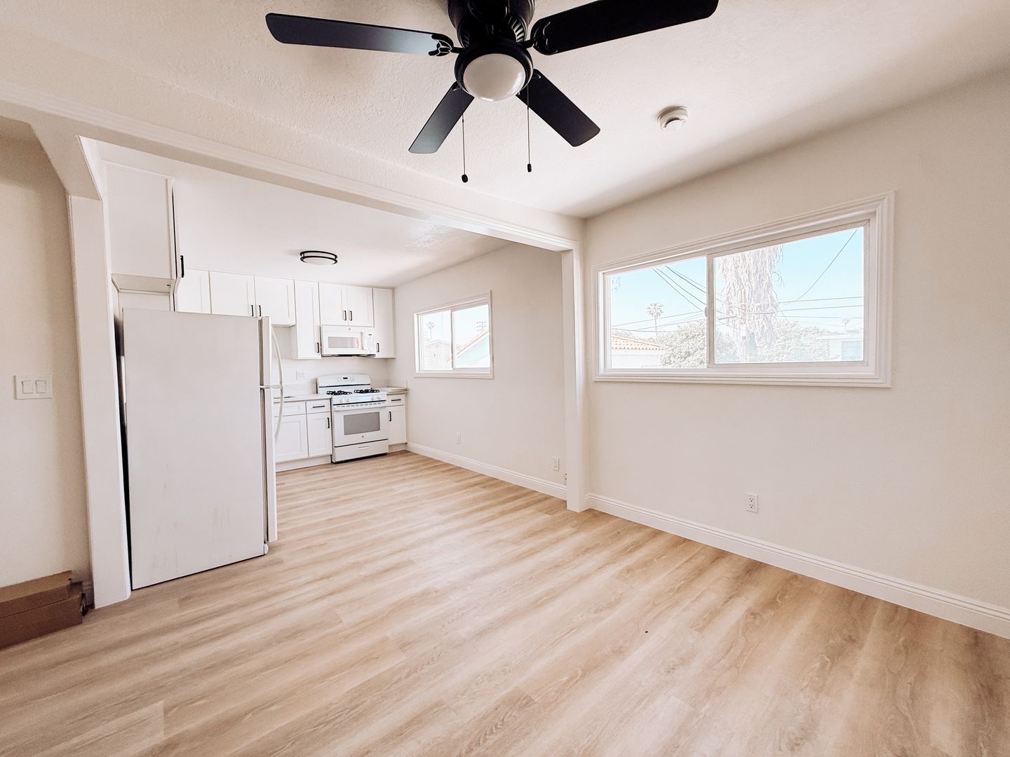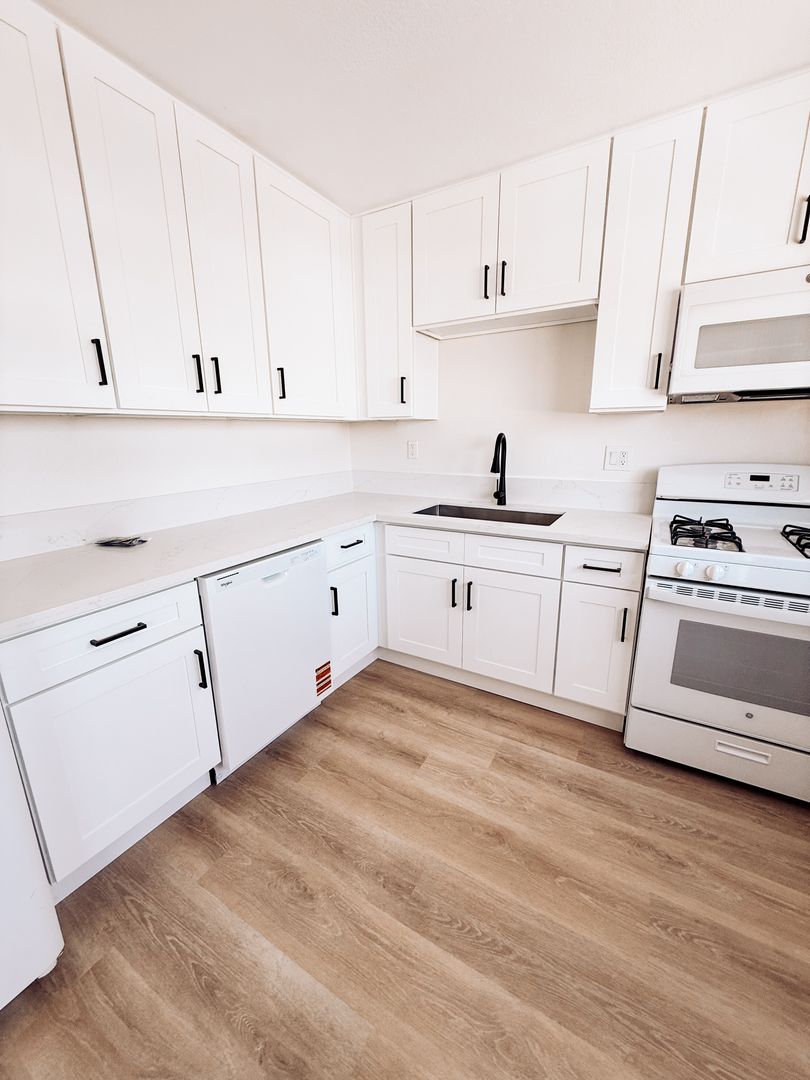 Bright upstairs 1-bedroom, 1-bath apartment in Wilmington, CA. This semi-gated unit has been freshly painted and features new vinyl plank flooring throughout, a renovated kitchen and bathroom, ceiling fans, and abundant natural light. Enjoy ample interior storage and the privacy of an upstairs location in a well-maintained building.